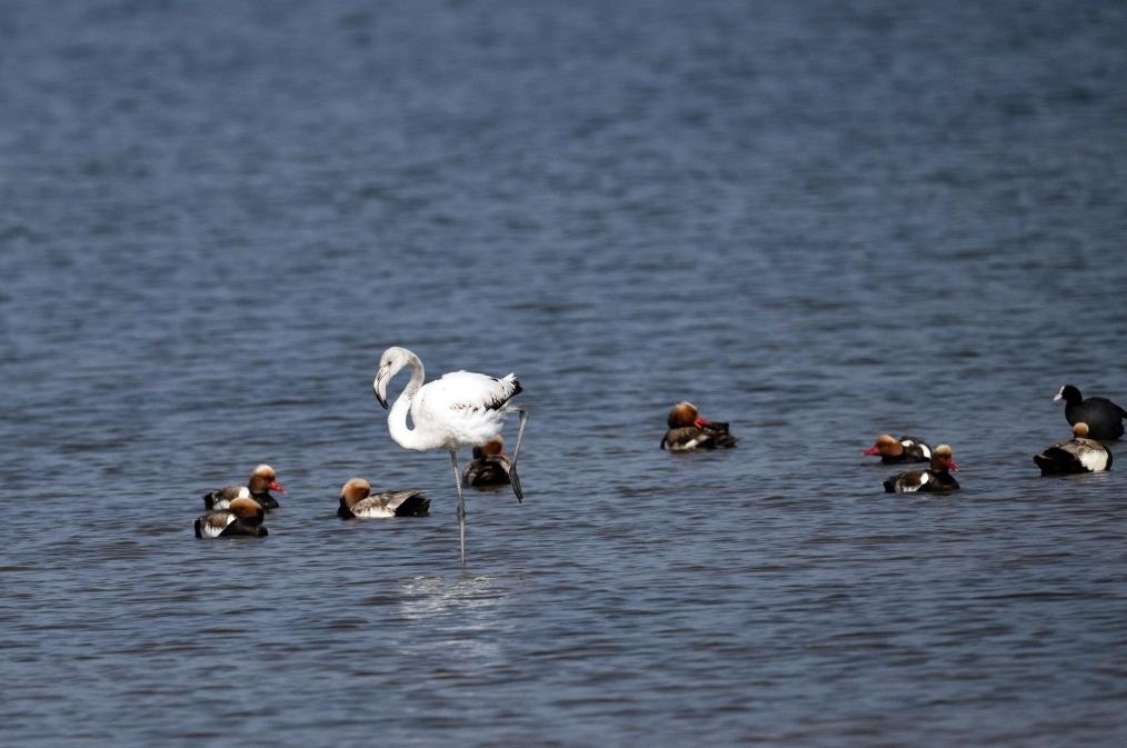大紅鸛又稱大火烈鳥,主要生活在鹽水、淡水棲息地,喜歡結(jié)群生活,主要分布于熱帶、亞熱帶地區(qū),已被列入國家保護的有益的或者有重要經(jīng)濟、科學(xué)研究價值的陸生野生動物名錄。陳峰說:“大紅鸛在烏梁素海屬于‘迷鳥’,實屬罕見。我們已安排專人在湖區(qū)周邊實行重點巡查,防止人類活動干擾大紅鸛的棲息,給它營造出適宜、安全的棲息環(huán)境。”