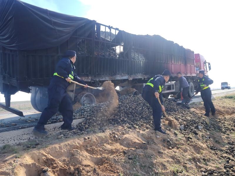 “叮鈴鈴、叮鈴鈴......”9月16日上午9時許,一聲清脆的警鈴讓阿拉善邊境管理支隊(duì)烏力吉邊境派出所的民警們的心為之一驚,有群眾報(bào)警稱在轄區(qū)S218省道上,一輛滿載土豆的重型半掛牽引車起火自燃了。