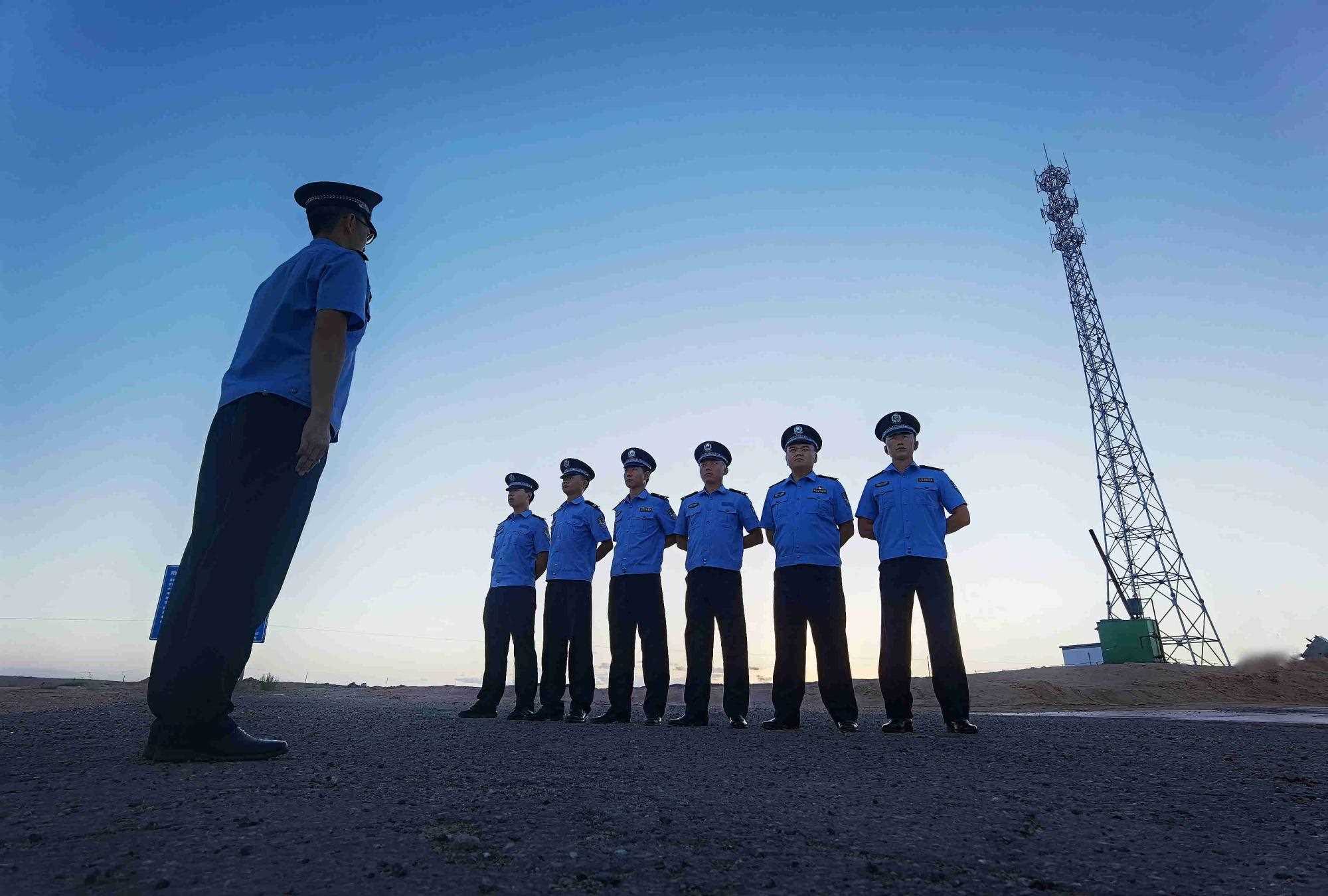8月4日,內蒙古出入境邊境檢查總站阿拉善邊境管理支隊塔木素布拉格邊境派出所組織開展隊列訓練,培養(yǎng)民警令行禁止的工作作風,助力全警實戰(zhàn)大練兵。(王鵬飛攝)