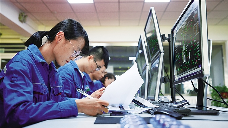 企業(yè)中控室內(nèi),技術(shù)人員正在對設(shè)備運(yùn)行情況進(jìn)行監(jiān)控。趙小麗攝