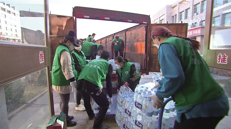 青年志愿者為支援疫情防控前線(xiàn)搬運(yùn)物資。