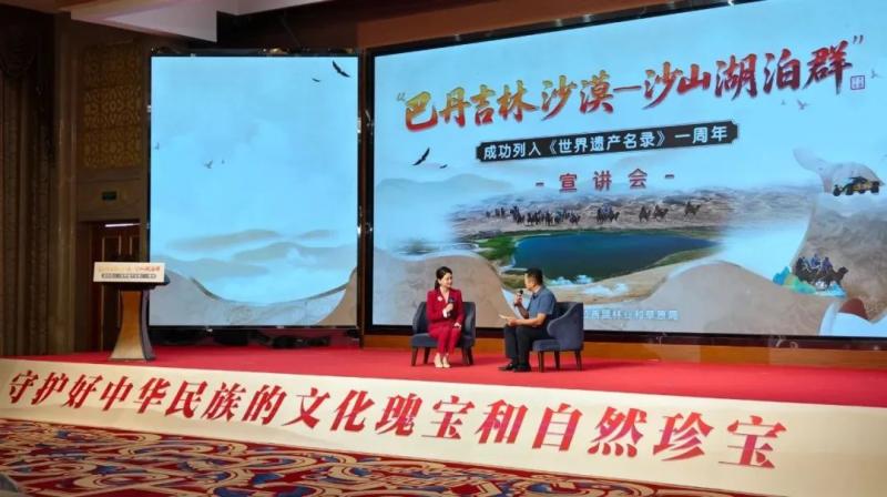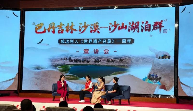 宣講會(huì)上,知名專家、一線工作者、志愿服務(wù)隊(duì)代表等宣講嘉賓和文旅從業(yè)者齊聚一堂,通過主題宣講、人物訪談的形式,共同回顧了“巴丹吉林沙漠—沙山湖泊群”申遺成功一周年以來的保護(hù)成果,立體展現(xiàn)了巴丹吉林沙漠的生態(tài)價(jià)值、保護(hù)實(shí)踐與時(shí)代意義,探討這片世界自然遺產(chǎn)的未來發(fā)展之路。