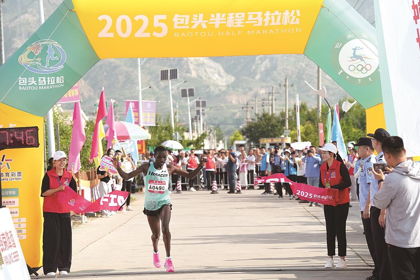 撞線后,男子組冠軍來(lái)自肯尼亞的選手Vincent kipchumba Toroitich表示:“這是我第一次來(lái)包頭,今天很開心能取得這個(gè)成績(jī),感覺(jué)包頭非常好?!?/p>