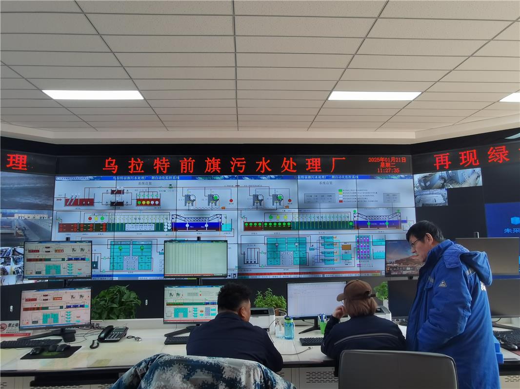 烏拉特前旗污水處理廠總控室。該廠通過智能化在線監(jiān)測,確保污水處理全過程嚴(yán)格達(dá)標(biāo)。2024年,共處理污水558萬噸,日均處理量達(dá)到1.53萬噸,達(dá)標(biāo)率為98.9%。處理后的中水達(dá)到國家一級A標(biāo)準(zhǔn),主要用于電廠、水務(wù)企業(yè)、道路灑掃和濕地生態(tài)補(bǔ)水等,實現(xiàn)了水資源的再利用。在水資源循環(huán)利用方面作出了積極貢獻(xiàn)。