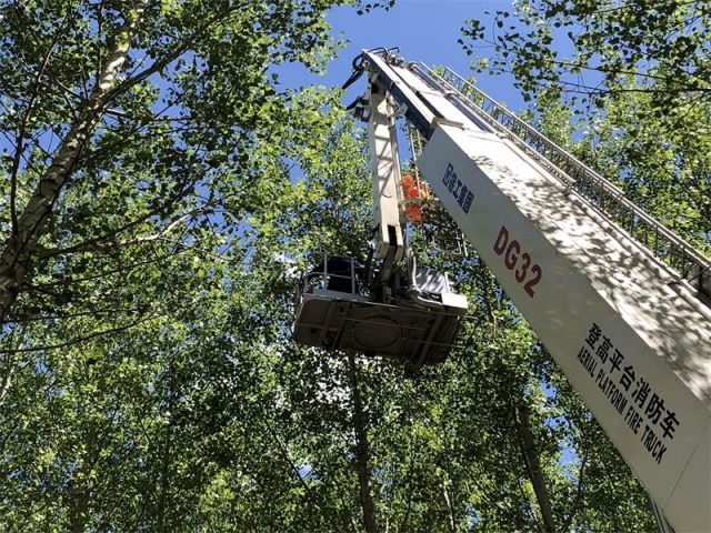 價值30多萬的無人機(jī)卡在樹上 32米登高平臺車來救援