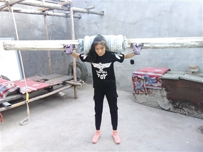 用工地上撿來(lái)的木頭樁和繩子制作的簡(jiǎn)易牽引機(jī),加了墊子的木凳做跳躍訓(xùn)練,用木頭和海綿做的啞鈴……走進(jìn)呼和浩特市土默特左旗察素齊鎮(zhèn)鄭國(guó)花的家里,由父親耗時(shí)半個(gè)月打造的簡(jiǎn)易健身房就是鄭國(guó)花每天訓(xùn)練體能的地方。鄭國(guó)花在土默特左旗第一中學(xué)高一就讀,每天凌晨4點(diǎn)多,父女二人就準(zhǔn)時(shí)出現(xiàn)在察素齊鎮(zhèn)街頭的柏油路和體育場(chǎng)里。從小學(xué)六年級(jí)到高一,訓(xùn)練從不懈怠,一堅(jiān)持就是5年?!捌鋵?shí)最初讓孩子練習(xí)中長(zhǎng)跑,主要是為了鍛煉孩子的身體。女兒4個(gè)月大的時(shí)候,她媽媽就離開了,我一直又當(dāng)?shù)之?dāng)媽把她拉扯大,但這娃娃身體一直不好,不怎么吃飯,身體十分瘦弱,直到上小學(xué)六年級(jí)的時(shí)候,連一碗飯都吃不進(jìn)去。我一看再這么下去身體指定是要垮掉的,就想著讓她練習(xí)跑步,能多吃點(diǎn)飯。因?yàn)槲沂擒娙顺錾?,以前也是運(yùn)動(dòng)員,和女兒商量后,她也同意了,我們就開始跑步。第一個(gè)月,她還追不上我,但飯量確實(shí)見長(zhǎng),到了第二個(gè)月,我就追不上她了,我開始騎著自行車陪她跑,再后來(lái)自行車追不上了,我就騎了一輛三輪車,三輪車也不行了,干脆買了一輛摩托車,這么多年從沒(méi)間斷過(guò)?!?月19日,鄭龍?jiān)诮邮苡浾卟稍L時(shí)表示,對(duì)于女兒,她最大的希望是女兒健健康康的,以后能進(jìn)入北京體育大學(xué),將來(lái)能進(jìn)入國(guó)家隊(duì),為國(guó)爭(zhēng)光。