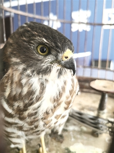 8月19日早上,民警于將雀鷹送往大青山野生動物救護中心,中心工作人員將對其進行觀察和喂養(yǎng),待其體能恢復(fù)后放歸自然?!?記者 郝儒冰)攝影/賈德京