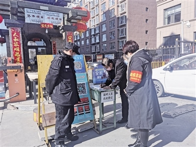 記者跟隨工作人員來(lái)到轄區(qū)地新街坊小區(qū),幾名社區(qū)工作人員正在小區(qū)門(mén)口負(fù)責(zé)疫情防控,“您好!請(qǐng)問(wèn)您去哪棟樓?請(qǐng)下車登記信息。謝謝!”“請(qǐng)居民佩戴好口罩”……針對(duì)出入小區(qū)的人員,社區(qū)工作人員都一一仔細(xì)核查,宣傳防疫信息?!按汗?jié)長(zhǎng)假過(guò)后,很多事都堆到今天了,所以格外忙。”阿拉善北路社區(qū)黨總支書(shū)記王海瓊說(shuō),阿拉善北路社區(qū)很多網(wǎng)格員都放棄了與家人團(tuán)聚的時(shí)間,主動(dòng)下沉到各個(gè)小區(qū)開(kāi)展疫情防控工作,實(shí)行24小時(shí)輪崗制,做好外地返呼人員登記和掃碼工作,保證轄區(qū)防控安全。除此之外,還積極參與禁燃煙花爆竹、垃圾分類宣傳等工作,讓政策落到實(shí)處。