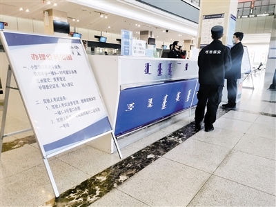 “你好!違章查詢和罰款繳納需要去交管隊(duì),不在這里辦理。如果是本人車輛,也可下載12123 APP進(jìn)行辦理?!?月18日9時(shí)10分,記者走進(jìn)呼和浩特市交警支隊(duì)車輛管理所,在政務(wù)服務(wù)中心東大廳正對(duì)著大門(mén)的導(dǎo)辦臺(tái),一位民警正在接受市民業(yè)務(wù)咨詢。記者看到,大廳里往日喧囂熱鬧的場(chǎng)景不見(jiàn)了,只有零星幾位市民在辦理業(yè)務(wù)。
