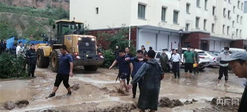 清水河縣組織部機關(guān)黨員干部在清水河縣河畔花園小區(qū)東區(qū)參加防汛抗洪(央廣網(wǎng)發(fā)潘磊攝)