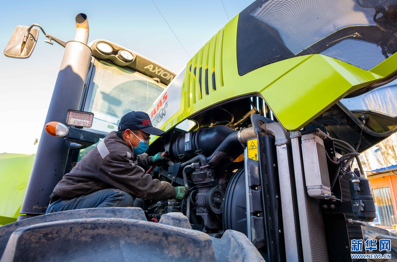 ??2月18日,在位于呼和浩特市玉泉區(qū)的一家農(nóng)機設(shè)備公司農(nóng)機具維修區(qū),工作人員在為當(dāng)?shù)氐霓r(nóng)戶檢修拖拉機。新華網(wǎng)發(fā)(丁根厚 攝)