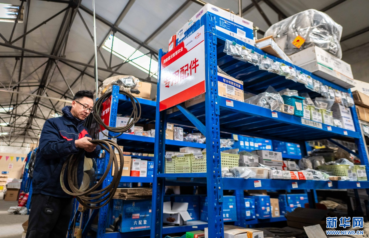 ??2月18日,在位于呼和浩特市玉泉區(qū)的一家農(nóng)機設(shè)備公司倉庫,工作人員在清點農(nóng)機具配件。新華網(wǎng)發(fā)(丁根厚 攝)