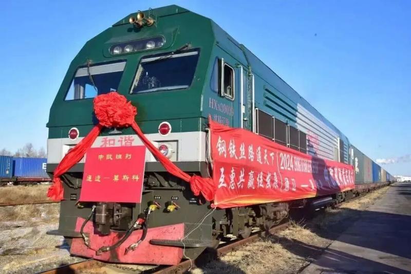 滿載55個集裝箱貨物的中歐班列從通遼駛向莫斯科。圖片來源通遼市融媒體中心微信公眾號