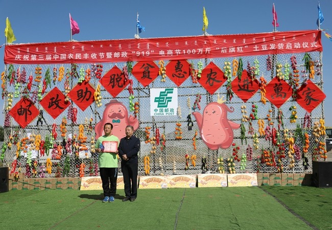 張偉)“今年計(jì)劃銷(xiāo)售100萬(wàn)斤‘后旗紅’馬鈴薯。”9月20日,慶祝第三屆中國(guó)農(nóng)民豐收節(jié)暨中國(guó)郵政“919電商節(jié)”100萬(wàn)斤“后旗紅”馬鈴薯發(fā)貨儀式,在內(nèi)蒙古烏蘭察布市察右后旗烏蘭哈達(dá)蘇木朝陽(yáng)村舉行。中國(guó)郵政集團(tuán)烏蘭察布市分公司副總經(jīng)理朱學(xué)勇接受記者采訪時(shí)表示,作為中國(guó)郵政集團(tuán)在內(nèi)蒙古地區(qū)打造的唯一“一省一品”特色農(nóng)產(chǎn)品品牌“后旗紅”,2018年銷(xiāo)售12萬(wàn)斤,2019年銷(xiāo)售52萬(wàn)斤,“后旗紅”馬鈴薯搭乘郵政綠色快車(chē),走向全國(guó)各地,已經(jīng)成為消費(fèi)者心目中的網(wǎng)紅產(chǎn)品。