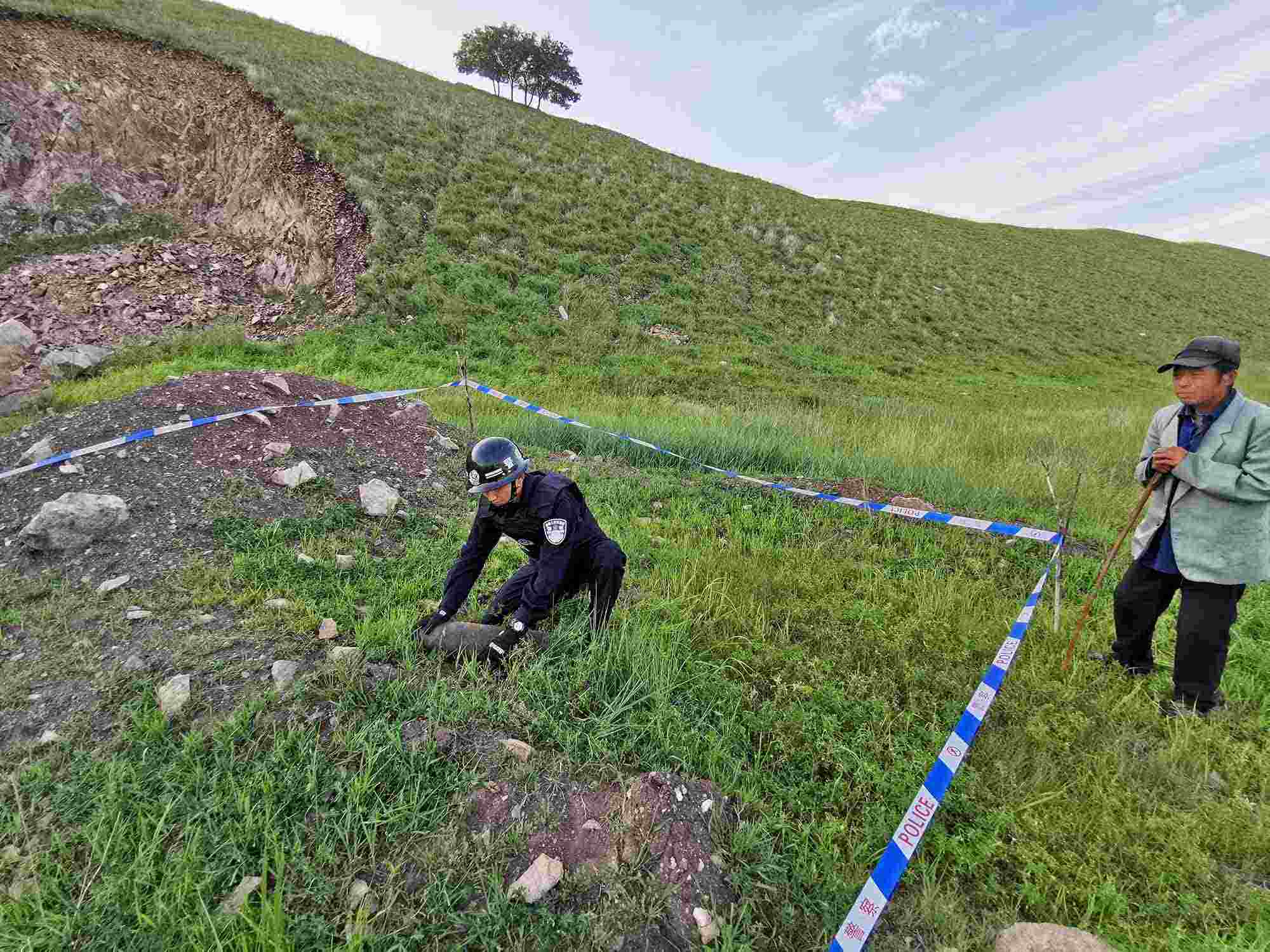 8月18日10時(shí),阿爾山邊境派出所接到轄區(qū)群眾報(bào)警稱(chēng):在阿爾山市某山上發(fā)現(xiàn)疑似炮彈的金屬物體。民警迅速趕往指定地點(diǎn),劃定警戒區(qū)、封鎖出入通道,在現(xiàn)場(chǎng)很快發(fā)現(xiàn)了長(zhǎng)約30厘米不等的3枚廢舊炮彈,經(jīng)初步勘驗(yàn),該炮彈系日軍侵華時(shí)期遺留,引信已經(jīng)損壞,但內(nèi)部裝置完好,受到劇烈撞擊仍有爆炸可能。8月19日14時(shí),科右前旗綠水邊境派出所民警下鄉(xiāng)走訪(fǎng)期間,根據(jù)羊倌反映,在一處放牧包附近挖出2枚20厘米不等的廢舊炮彈和1枚手雷,炮彈的鐵質(zhì)外殼雖已生銹,但引信完好,輪廓清晰,若有牲畜踩踏仍有可能發(fā)生爆炸,具有較大的殺傷力。為徹查隱患,民警將炮彈轉(zhuǎn)至安全地帶后,對(duì)附近區(qū)域進(jìn)行了全方位排查搜索,未發(fā)現(xiàn)其他安全隱患。