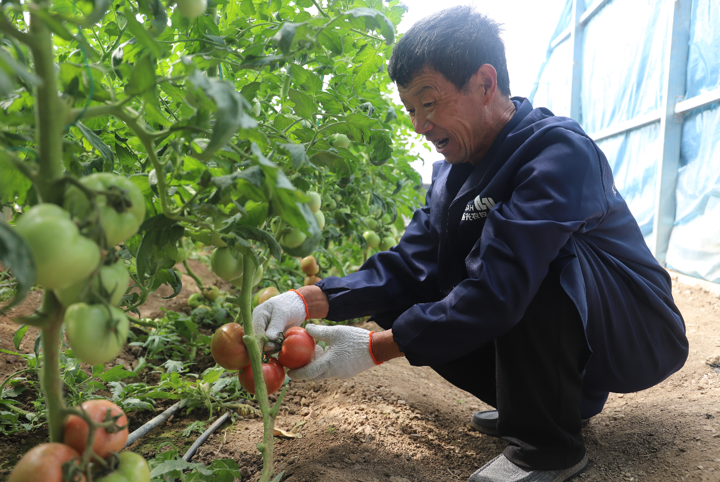 工人正在查看蔬菜生長情況