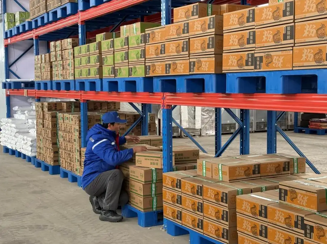 這座占地3000平方米的現(xiàn)代化物流樞紐功能齊全:保鮮冷藏區(qū)保障牛羊肉和乳制品的新鮮口感;常溫倉儲區(qū)整齊碼放著大米、沙果干等特產(chǎn);打包區(qū)里工人配合膜包機(jī)完成高效分裝。更重要的是,政府持續(xù)給予租金補(bǔ)貼,大大減輕了企業(yè)的倉儲負(fù)擔(dān)。