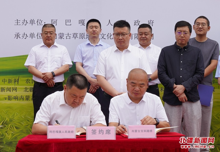 推介會(huì)現(xiàn)場(chǎng),阿巴嘎旗人民政府副旗長(zhǎng)李軍分別與內(nèi)蒙古交科路橋建設(shè)有限公司黨委書記、董事長(zhǎng)鈕英才,內(nèi)蒙古草原地圖文化傳播有限公司負(fù)責(zé)人王國柱簽訂戰(zhàn)略合作協(xié)議。
