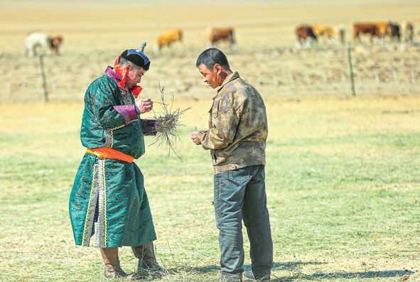 3月28日,在草場上,一名嘎查黨員與牧民交流。近年來,內(nèi)蒙古西烏珠穆沁旗浩勒圖高勒鎮(zhèn)巴彥額日和圖嘎查堅持黨建引領(lǐng),在發(fā)展牧區(qū)旅游、綠色畜牧業(yè)提高嘎查集體經(jīng)濟收入的同時,基層黨組織還通過直播、短視頻等方式,吸引外地游客及客商,帶動牧民增收致富。新華社記者王楷焱攝