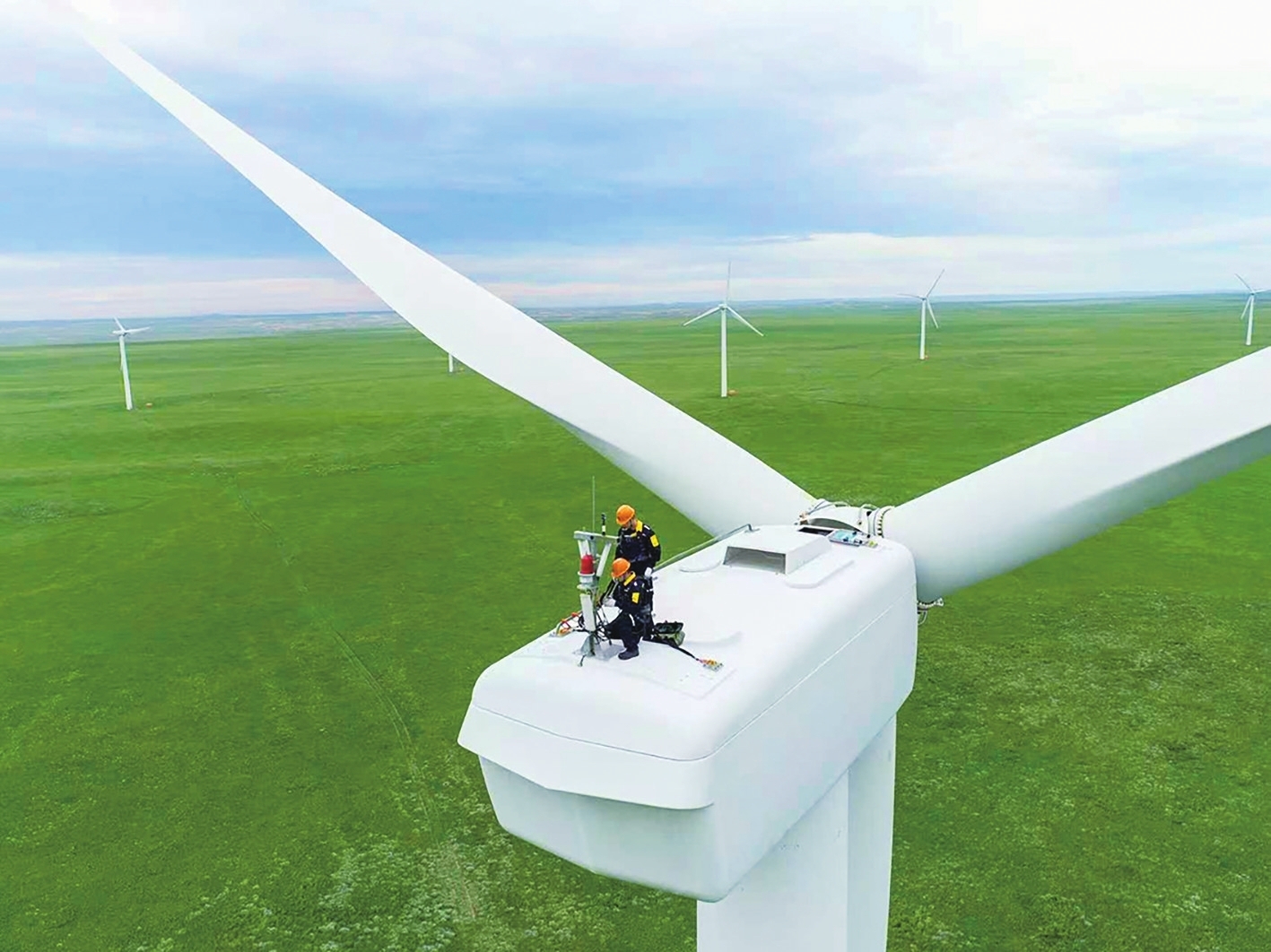 近日,國華投資蒙東分公司輝騰梁風電場內(nèi),風機群與遍野花海相映成趣,兩名風電運維工程師,正在交流剛處理完的偏航故障細節(jié),核對風速儀、風向標校準數(shù)據(jù),討論后續(xù)防沙維護措施,同時檢查設備運行狀態(tài),確保風機穩(wěn)定發(fā)電。
