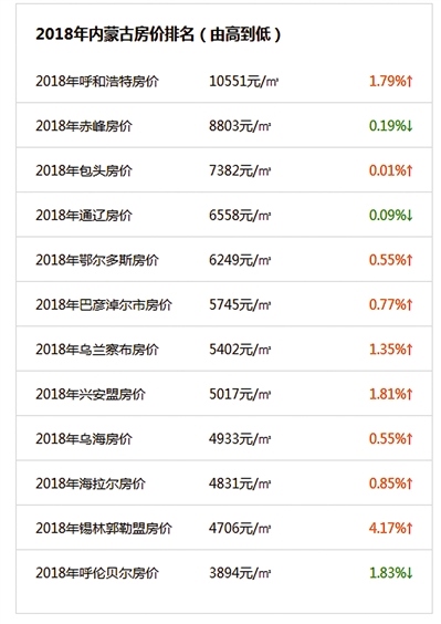 那么,我區(qū)12盟市的房價(jià)2018年走勢如何?新樓盤的均價(jià)都在什么價(jià)位區(qū)間?記者從安居客官網(wǎng)的統(tǒng)計(jì)中為大家梳理如下: