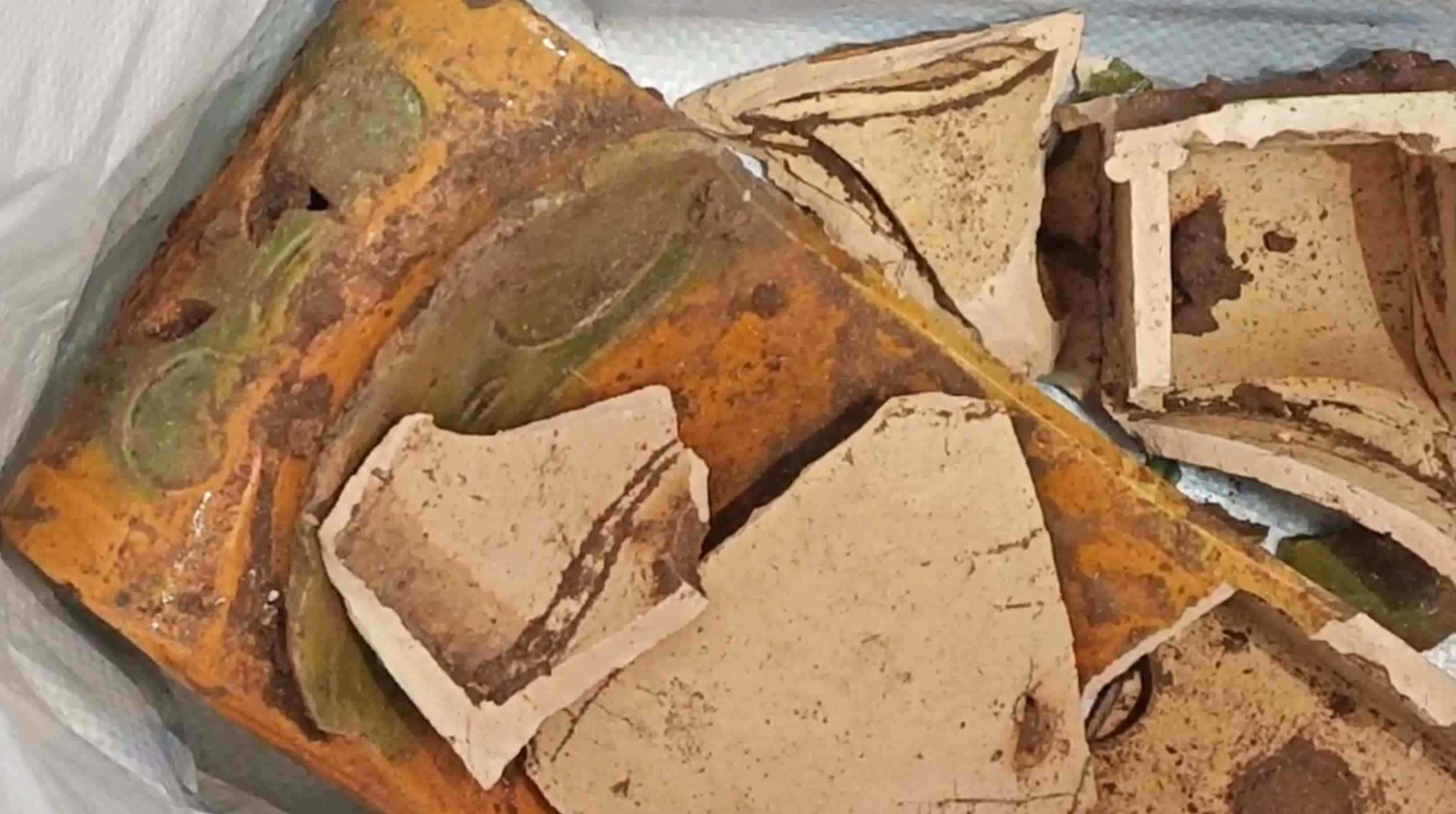 ▲嫌疑人從墓室里竊得并在逃跑時(shí)摔碎的瓷枕