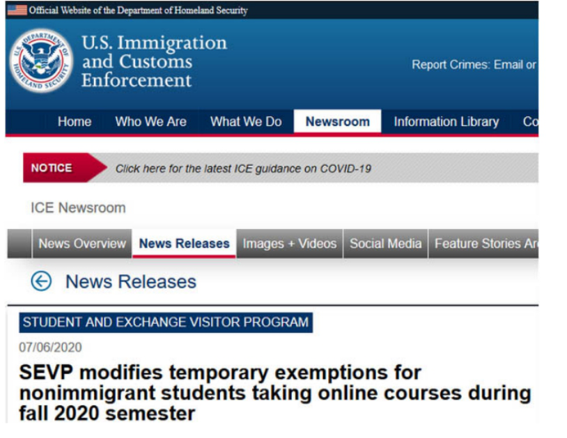當(dāng)?shù)貢r(shí)間7月6日,針對(duì)美國(guó)高校今年秋天將開始的課程,美國(guó)移民與海關(guān)執(zhí)法局(ICE)發(fā)布了一項(xiàng)新規(guī)定,大致是這么幾個(gè)意思:
