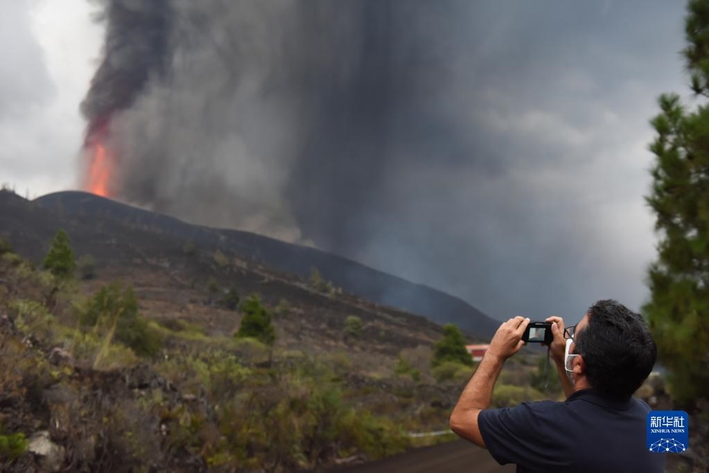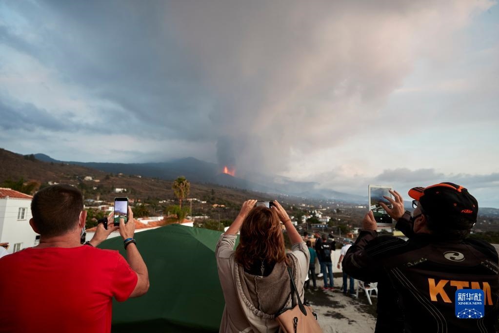 9月23日,人們在西班牙拉帕爾馬島觀看火山噴發(fā)。
