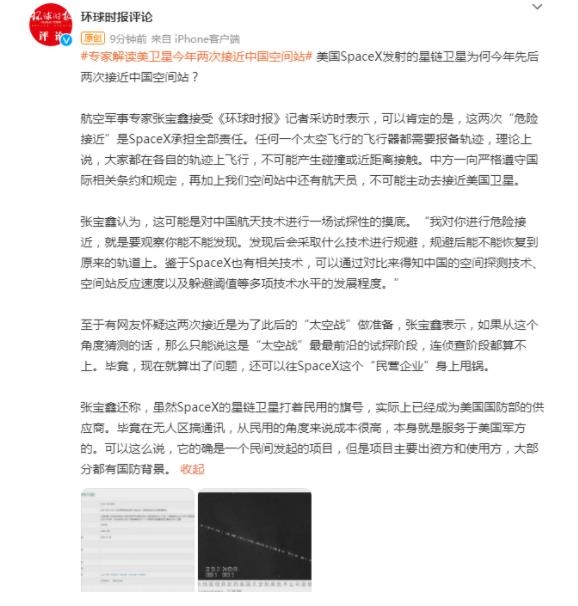 #專(zhuān)家解讀美衛(wèi)星今年兩次接近中國(guó)空間站# 美國(guó)SpaceX發(fā)射的星鏈衛(wèi)星為何今年先后兩次接近中國(guó)空間站?