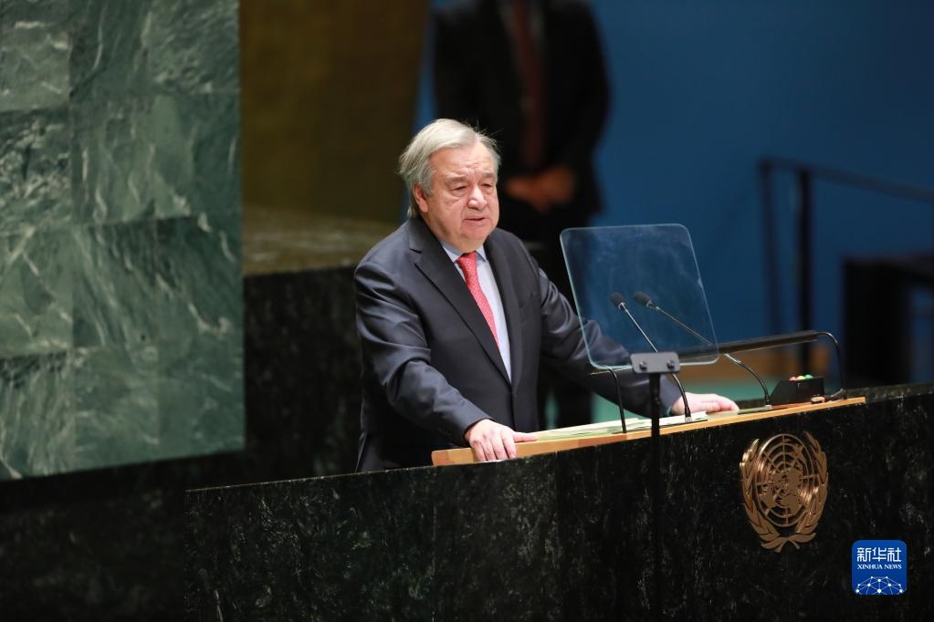 2月6日,在位于紐約的聯(lián)合國總部,聯(lián)合國秘書長古特雷斯發(fā)表講話。新華社記者 謝鍔 攝