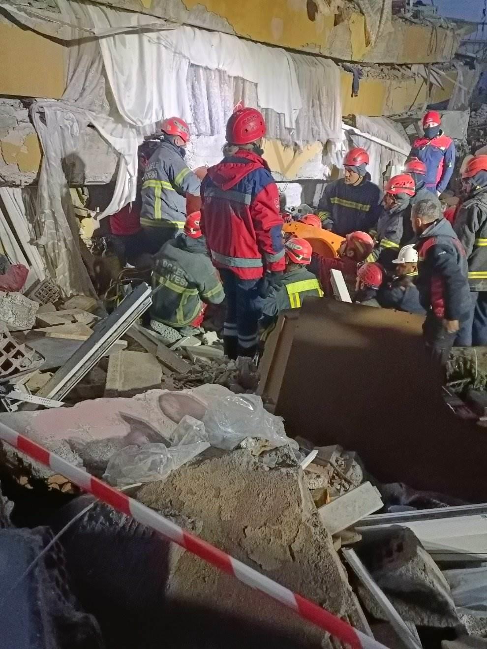 當?shù)貢r間2月11日18點51分,中國救援力量與當?shù)鼐仍α柯?lián)合救出一位被困廢墟中的小男孩,并將他移離現(xiàn)場送上救護車。此時距離強震發(fā)生已經(jīng)超過150小時,且當?shù)貧鉁剌^低,被困者生存難度很大。