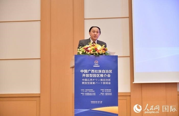 人民網(wǎng)東京3月14日電 (孫璐、葉習(xí)民、滕雪、許可)13日,為進(jìn)一步推動(dòng)廣西與日本企業(yè)的經(jīng)貿(mào)交流合作,由廣西壯族自治區(qū)商務(wù)廳主辦、在日中國(guó)企業(yè)協(xié)會(huì)承辦、日本貿(mào)易振興機(jī)構(gòu)廣州代表處以及人民網(wǎng)日本株式會(huì)社作為支持單位的“中國(guó)廣西壯族自治區(qū)開(kāi)放型園區(qū)推介會(huì)”在日本東京兩國(guó)第一酒店舉行,包括80多家廣西與日本企業(yè)、投資機(jī)構(gòu)、渠道伙伴以及中日主流媒體在內(nèi)的120余人參會(huì),共話合作發(fā)展。