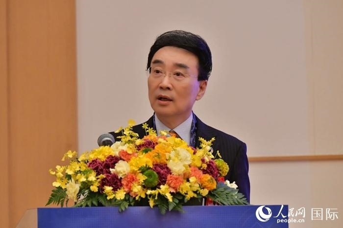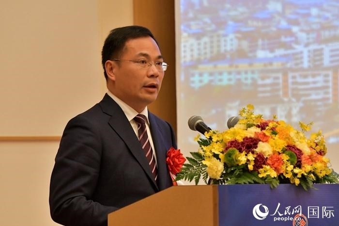 中國(guó)駐日本大使館經(jīng)濟(jì)商務(wù)公使代表申宇致辭。人民網(wǎng) 滕雪攝