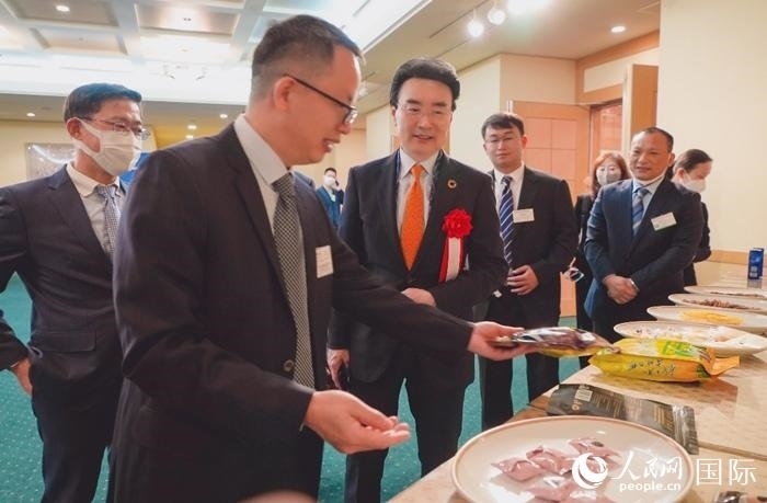 廣西經(jīng)貿(mào)代表團(tuán)與日本國(guó)際貿(mào)易促進(jìn)協(xié)會(huì)進(jìn)行現(xiàn)場(chǎng)交流。人民網(wǎng) 滕雪攝