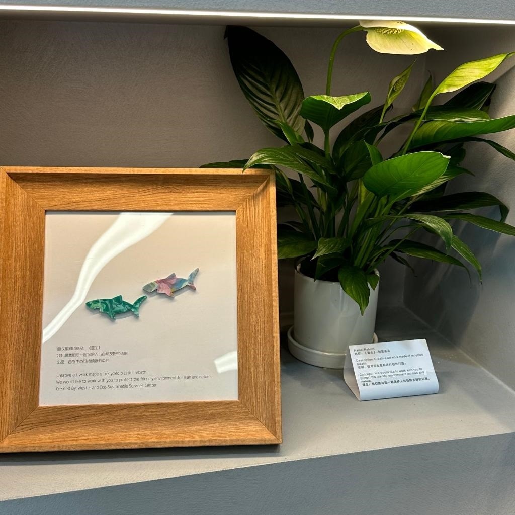 論壇主題展展示的用回收塑料制作的創(chuàng)意畫品。新華社記者陳凱姿 攝