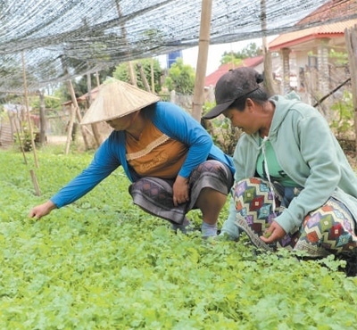 2019年開始,試驗站陸續(xù)在老撾各地建立新品種新技術推廣示范點,至今已在全國4個鄉(xiāng)村建立起技術推廣示范點,指導農民進行有機蔬菜、火龍果、水稻種植。金花村位于湄公河支流南俄河邊,曾經一到雨季,農地就會被淹。在中方技術支持下,村民開墾荒地種植蔬菜,累計種植面積超過500畝?!叭?00多戶,現已有70多戶種植蔬菜,試驗站提供優(yōu)質種子、傳授種植技術和防治病蟲害方法,投入少、產量高,讓這里成了首都郊外的蔬菜基地。隨著收入不斷增加,不少村民蓋了新房子、買了汽車,日子越過越紅火。”村長蘇里貢說。