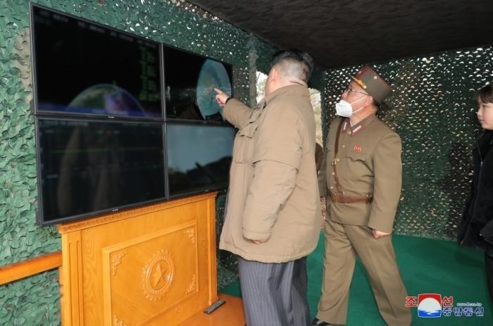 金正恩在試射現(xiàn)場(chǎng)觀察了發(fā)射前的準(zhǔn)備過(guò)程,了解了新型武器系統(tǒng)。
