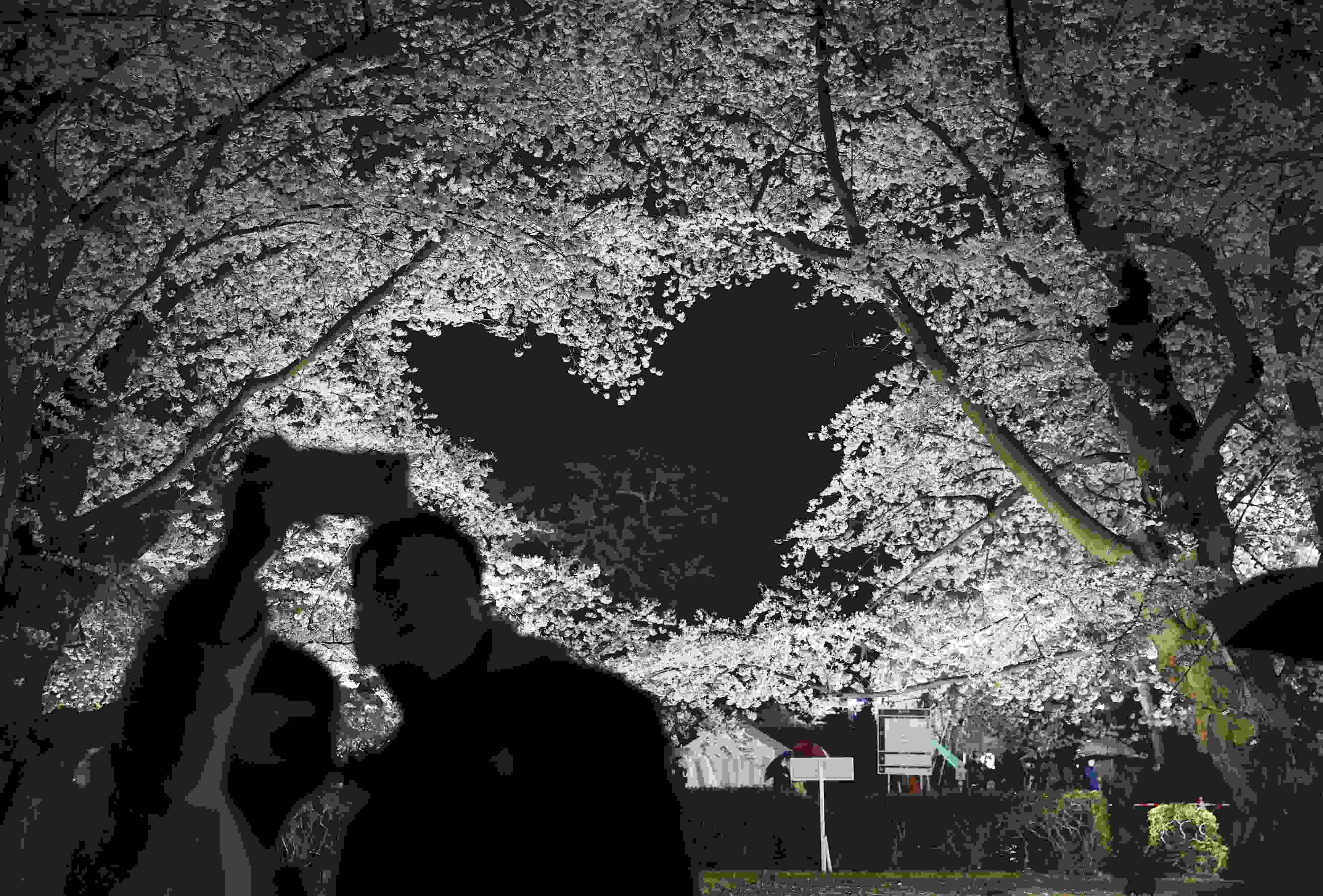 日本弘前公園櫻花盛開形成“愛心”圖案