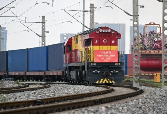4月23日,中歐班列長安號吉利汽車出口專列從西安國際港站駛出。新華社記者 李一博 攝