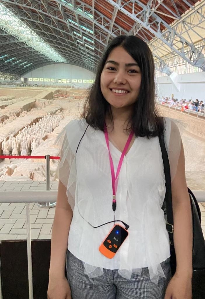 卡莉達參觀秦兵馬俑時拍照留念。受訪者供圖