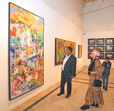 人們在埃及首都開羅參觀“藝匯絲路——中阿知名藝術(shù)家采風作品展”。新華社記者 隋先凱攝