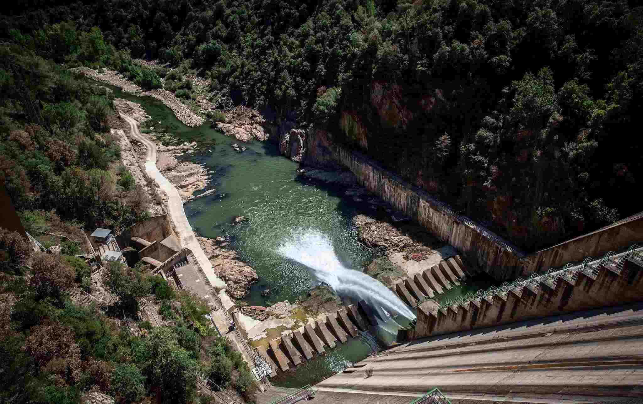 當(dāng)?shù)貢r間2022年8月20日,西班牙維拉諾瓦德索,水從大壩傾瀉而下。