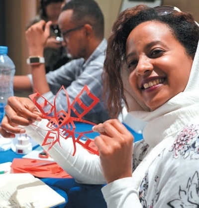 首期“數(shù)字創(chuàng)新與跨境電商”訓(xùn)練營(yíng)學(xué)員展示剪紙作品。 吳雨濃攝