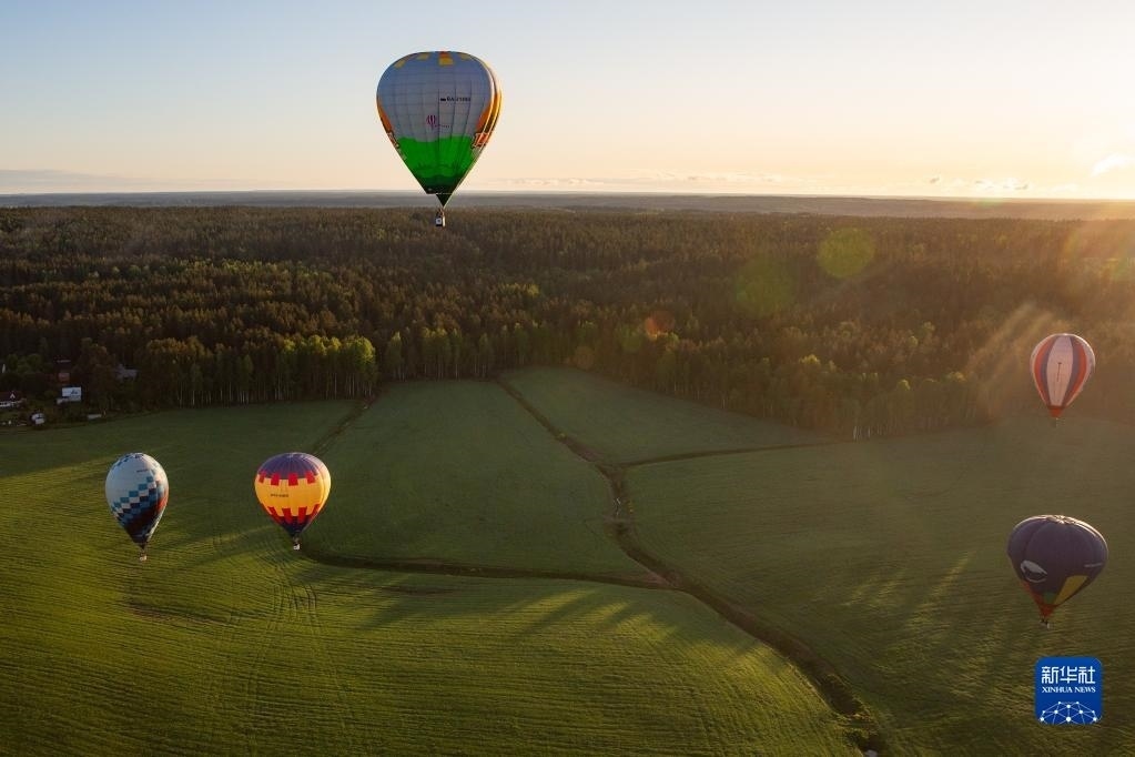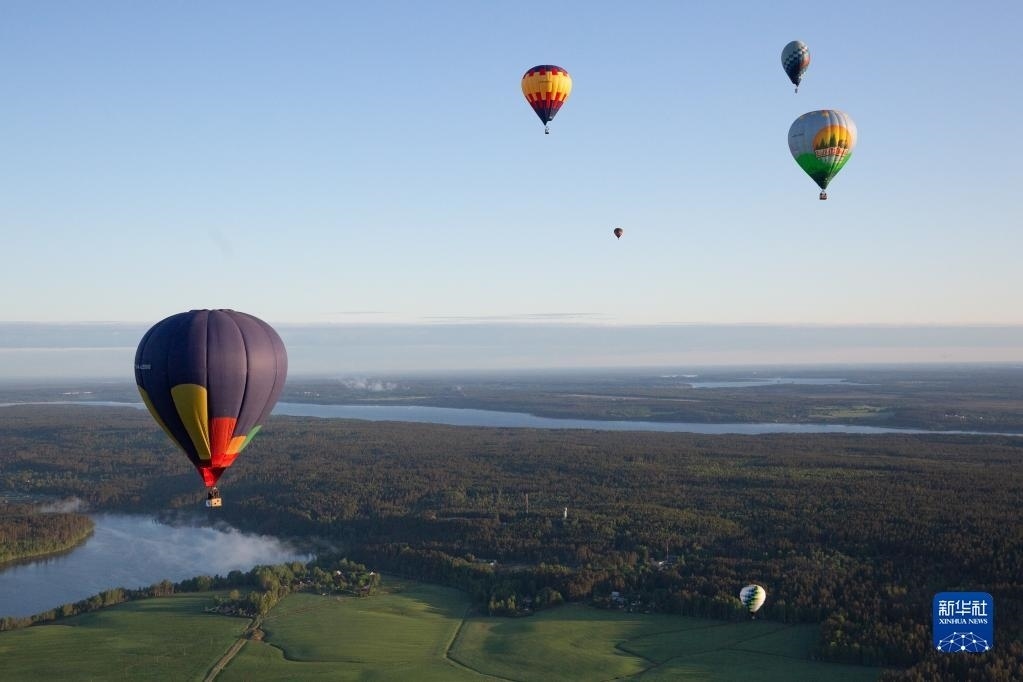 這是5月27日在俄羅斯列寧格勒州拍攝的熱氣球。   新華社發(fā)(莫京娜 攝)