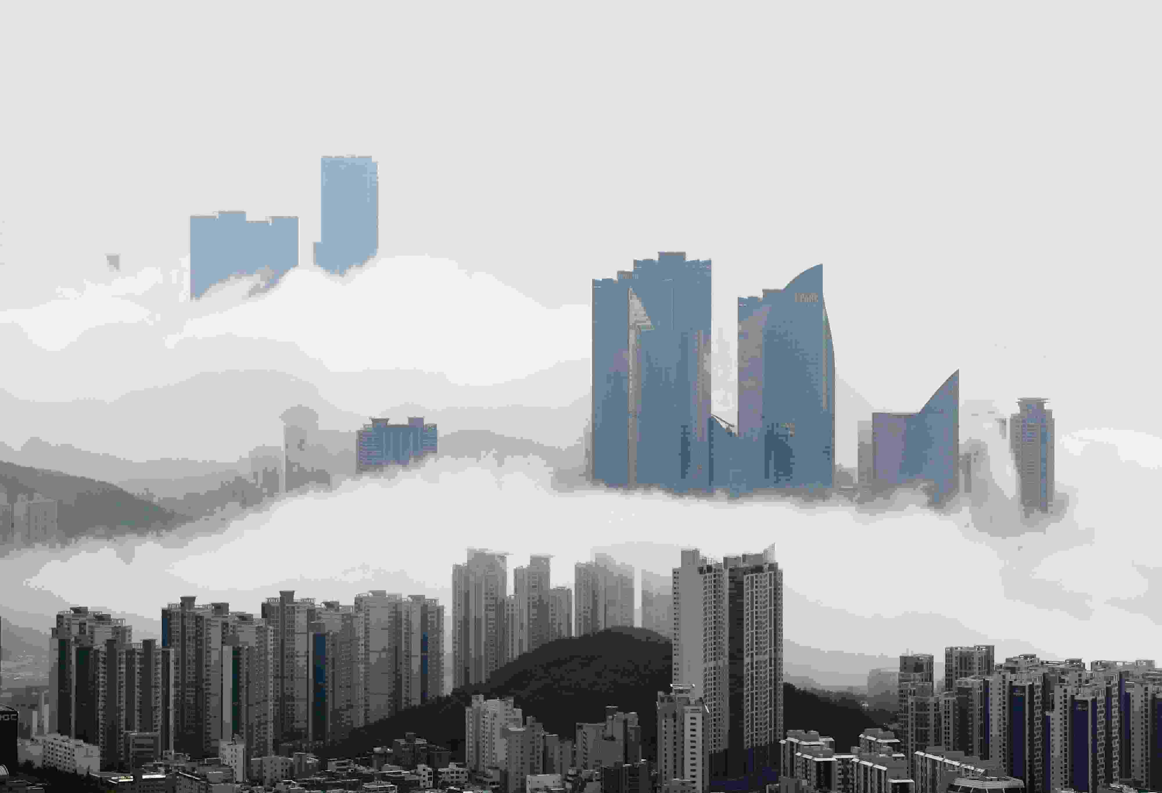 當(dāng)?shù)貢r間2023年6月12日,韓國釜山,廣安大橋一帶海霧彌漫,蔚為壯觀。 視覺中國
