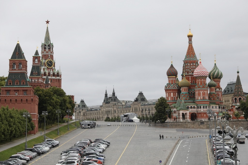 6月24日,執(zhí)勤人員在俄羅斯莫斯科紅場附近警戒。新華社記者白雪騏攝