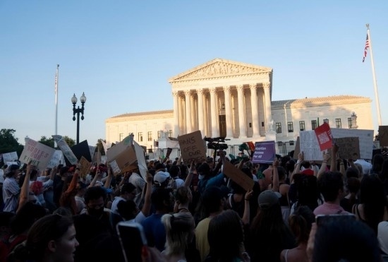 2022年6月24日,墮胎權(quán)支持者在美國首都華盛頓的聯(lián)邦最高法院外抗議。當天,美國聯(lián)邦最高法院推翻近半個世紀前在聯(lián)邦層面確立墮胎權(quán)的判例“羅訴韋德案”。新華社記者劉杰攝