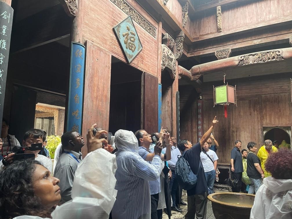 圖為駐華使節(jié)參觀(guān)世界文化遺產(chǎn)地宏村。新華社記者董雪 攝