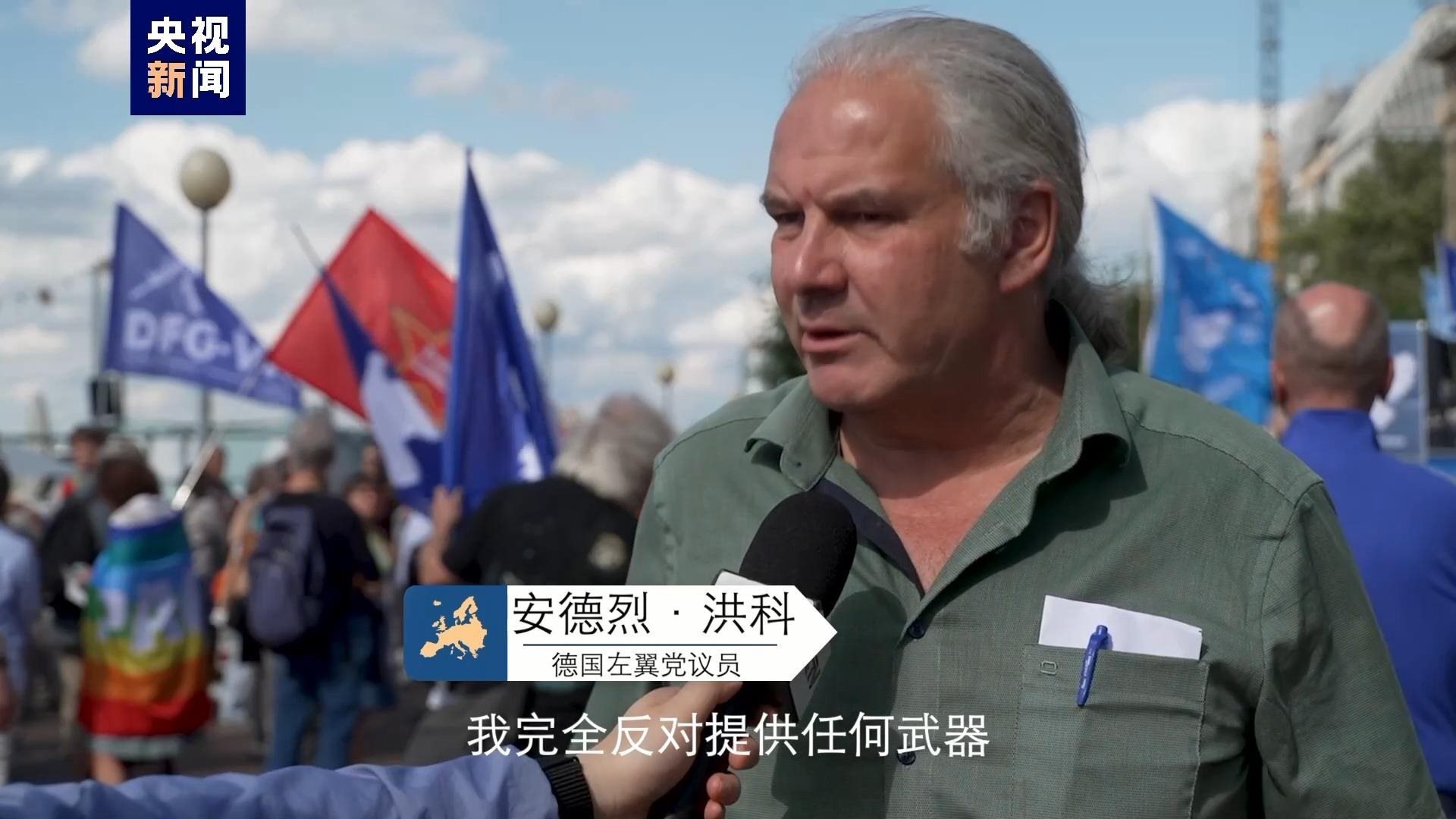 德國民眾 沃爾夫?qū)?/strong>:我們在這里(柏林)要求立即實(shí)現(xiàn)?;稹W鳛楹推街髁x者我們反對北約,反對軍事手段。軍事手段不是俄烏沖突的解決方案。俄烏沖突只能通過外交手段解決。