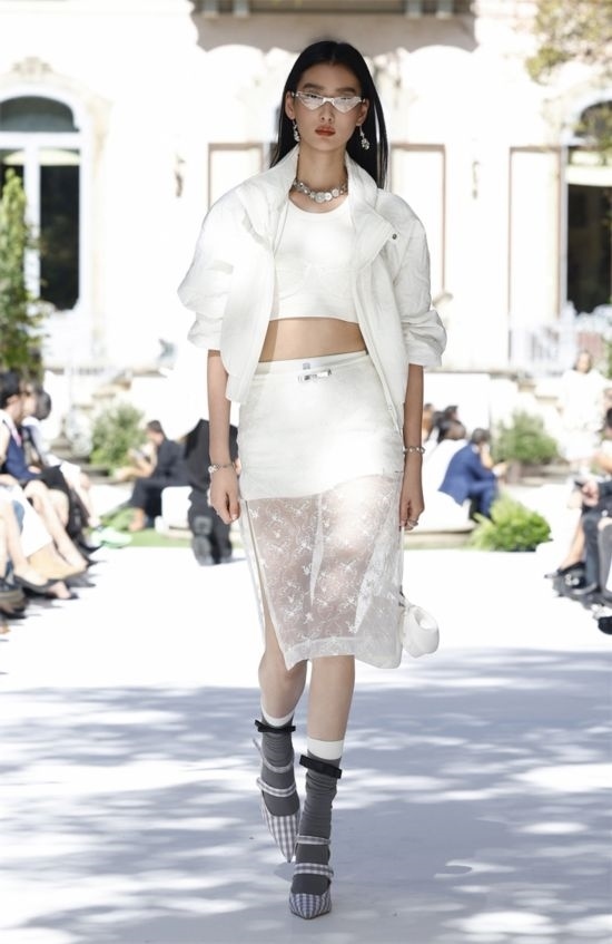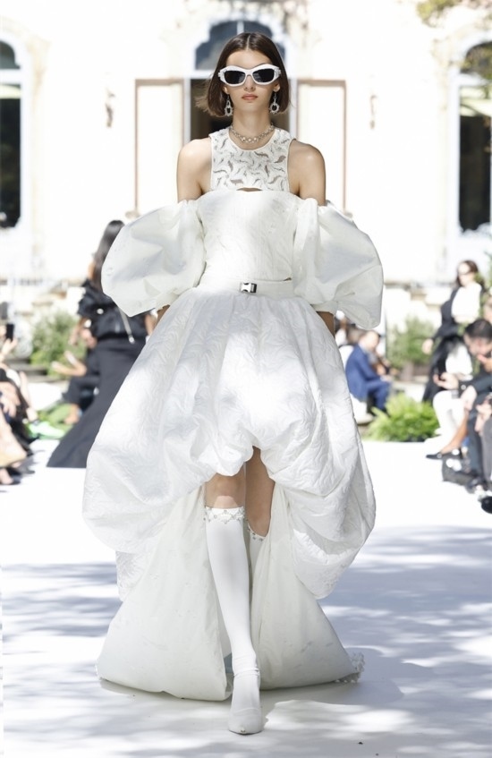 模特身穿有蘇繡、蕾絲的秀款